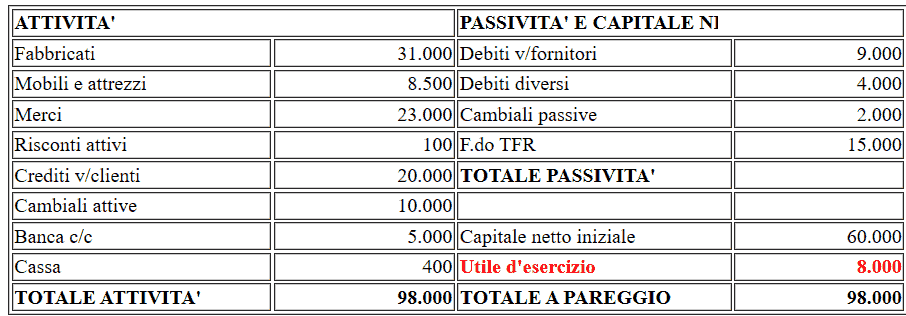 Se l'esercizio si concluso con un utile, esso viene indicato nella sezione di destra dello Stato Patrimoniale: l'utile va ad incrementare il capitale netto iniziale.